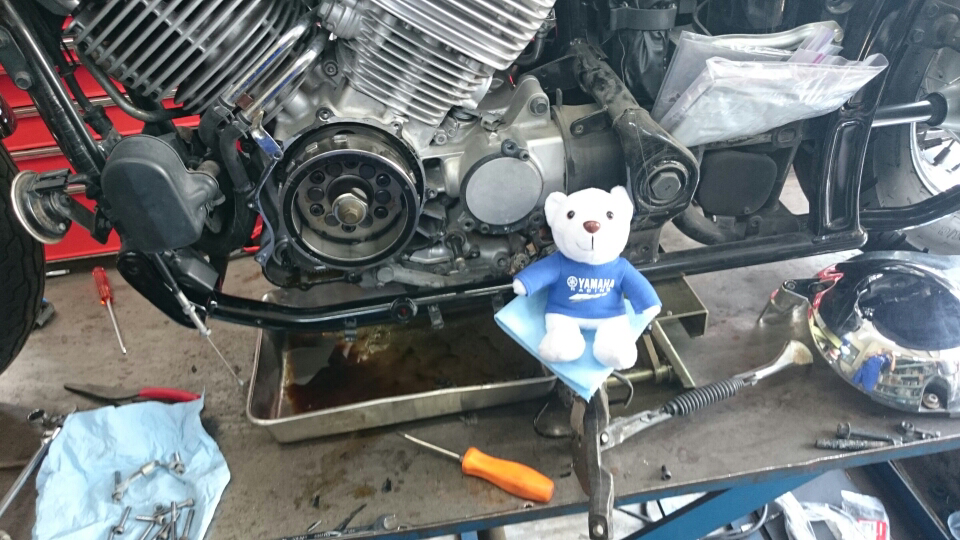 今日は、ドラックスターDS4のリコール修理 ステーターコイルの交換をはりきって行います。